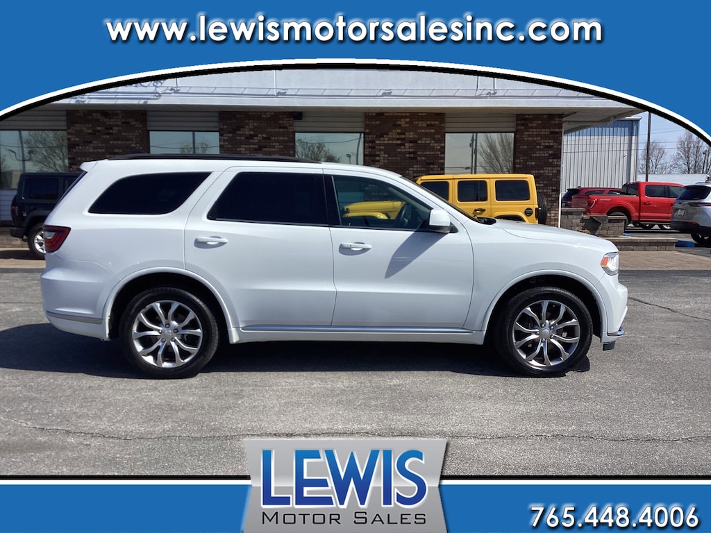 Come see this 2018 Dodge Durango SXT. Its Automatic transmission and Regular Unleaded V-6 3.6 L/220 engine will keep you going. This Dodge Durango has the following options: WHITE KNUCKLE CLEARCOAT, WHEELS: 20" X 8.0" SATIN CARBON FINISH, TRANSMISSION: 8-SPEED AUTOMATIC (850RE) (STD), TIRES: P265/50R20 BSW AS LRR, SIRIUSXM SATELLITE RADIO -inc: 1-Year SiriusXM Radio Service, No Satellite Coverage HI/AK/PR/VI/GU, For More Info, Call 800-643-2112, QUICK ORDER PACKAGE 2BB -inc: Engine: 3.6L V6 24V VVT UPG I w/ESS, Transmission: 8-Speed Automatic (850RE), ParkSense Rear Park Assist w/Stop, SiriusXM Satellite Radio, 1-Year SiriusXM Radio Service, No Satellite Coverage HI/AK/PR/VI/GU, For More Info, Call 800-643-2112, Bright Side Roof Rails, Integrated Roof Rail Crossbars, Power 8-Way Driver/Manual Passenger Seat, Power 4-Way Driver Lumbar Adjust, Comfort Seating Group, POPULAR EQUIPMENT GROUP -inc: Heated Steering Wheel, Power Liftgate, Heated Front Seats, MANUFACTURER'S STATEMENT OF ORIGIN, ENGINE: 3.6L V6 24V VVT UPG I W/ESS (STD), and BLACK, CLOTH LOW-BACK BUCKET SEATS. Test drive this vehicle at Lewis Motor Sales, 1125 Sagamore Pkwy S., Lafayette, IN 47905.